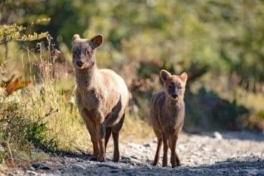 Pudus are herbivorous browsers that primarily consume leaves of ferns, trees, vines, herbs and shrubs. They prefer feeding around forest edges or fragmented environments, as they are abundant with smaller plants like saplings and forbs.