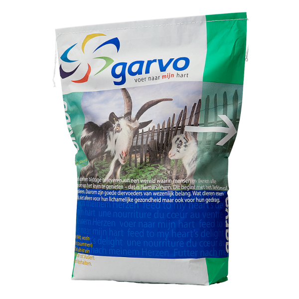 The nutritional guidelines are only an indication. The amount of feed is partly dependent on the condition of the animals. • Summer: for dwarf goats (8 - 10 kg) 80 gram and goats (18 - 25 kg) 150 gram. • When less than 5º C and/or low roughage supply: for dwarf goats (8 - 10 kg) 170 gram and goats (18 - 25 kg) 300 gram • End of gestation and lactation: dwarf goats (8 - 10 kg) 220 gram and goats (18 – 25 kg) 400 gram. • Kids definitely need colostrum milk. Let them suckle the mother at least 8 weeks. After about 14 days let the kids eat along with 1020 alfamix goat and hay. In that way their ruman/stomach develops correctly early on. From 8 weeks on, feed kids daily about 1.5 procent of their bodyweight with 1020 alfamix goat. • Make sure there are enough feeding spots and that there is always enough fresh drinking water. • Make sure that the goats have a continuous supply of roughage in the form of hay or grass and straw.