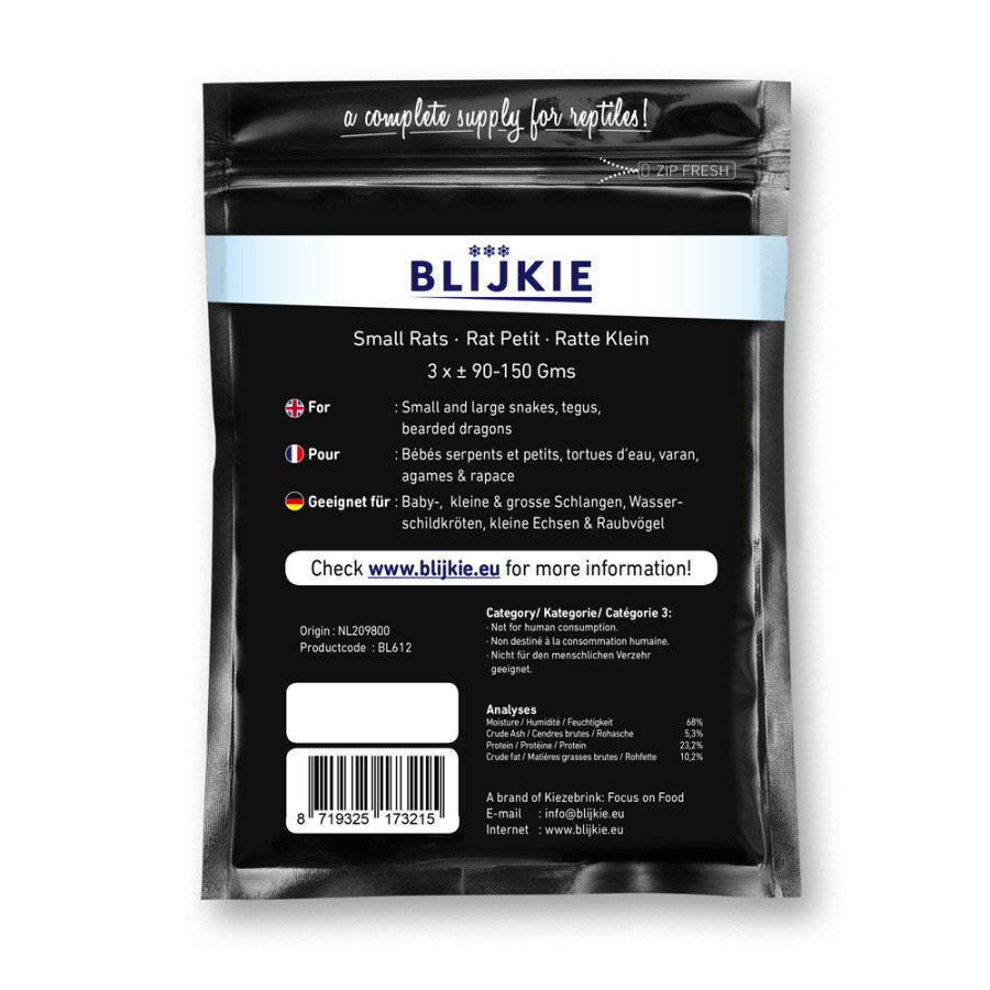 Home > Pets & Exotics > Whole prey > Blijkie BF Small Rat (90-150g) - 10x3 pcs