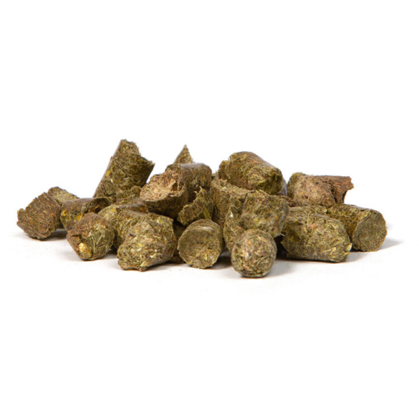 Boskos Grazer is especially made for (African) grazing species, for example: Zebra, Wildebeest, Blesbok, Sable antelope and White rhino. This feed contains a high amount (66%) of African grass species (Eragrostis grass, Smuts finger grass, Blue buffalo grass). The natural ratio of fiber fractions NDF, ADF and ADL supports the digestive system of grazing species. Besides this, it contains linseed as a source of omega 3 fatty acids and a small percentage (10%) African browse species (Acacia, Sickle bush). This product is an 'Ethical Product' because the balance of the savannah is restored by harvesting the ingredients. More information about this proces can be found on www.boskos.eu.