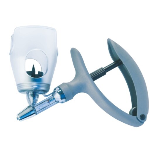 Corresponding self-filling syringe including needle to inject fish eater liquid into feed fish. This is a very durable equipment which can be used for a long time if cleaned well.