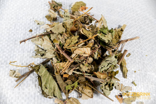 These leaves are dried and can therefore be stored outside the freezer. It is a suitable source of fiber for all kinds of leaf-eating animals. The weight of the bags can vary but is between 10 and 20 kg.