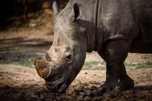 White rhinos are herbivorous grazers that feed almost exclusively on short grasses. In the wild, they spend around half of their day searching for food. They can go without water for around 4 days but prefer to drink around twice a day.