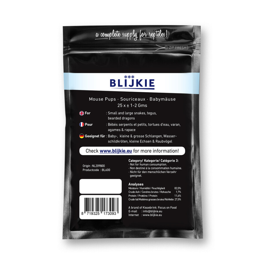 Home > Pets & Exotics > Heel prooidier > Blijkie BF Babymuis (1-2 g) - 25x25 st.